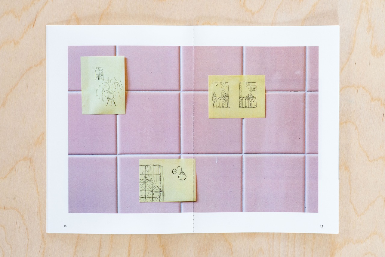 下山健太郎はpost it にドローイングを描く、貼るを主に自分の部屋で行っていた時の写真集です。