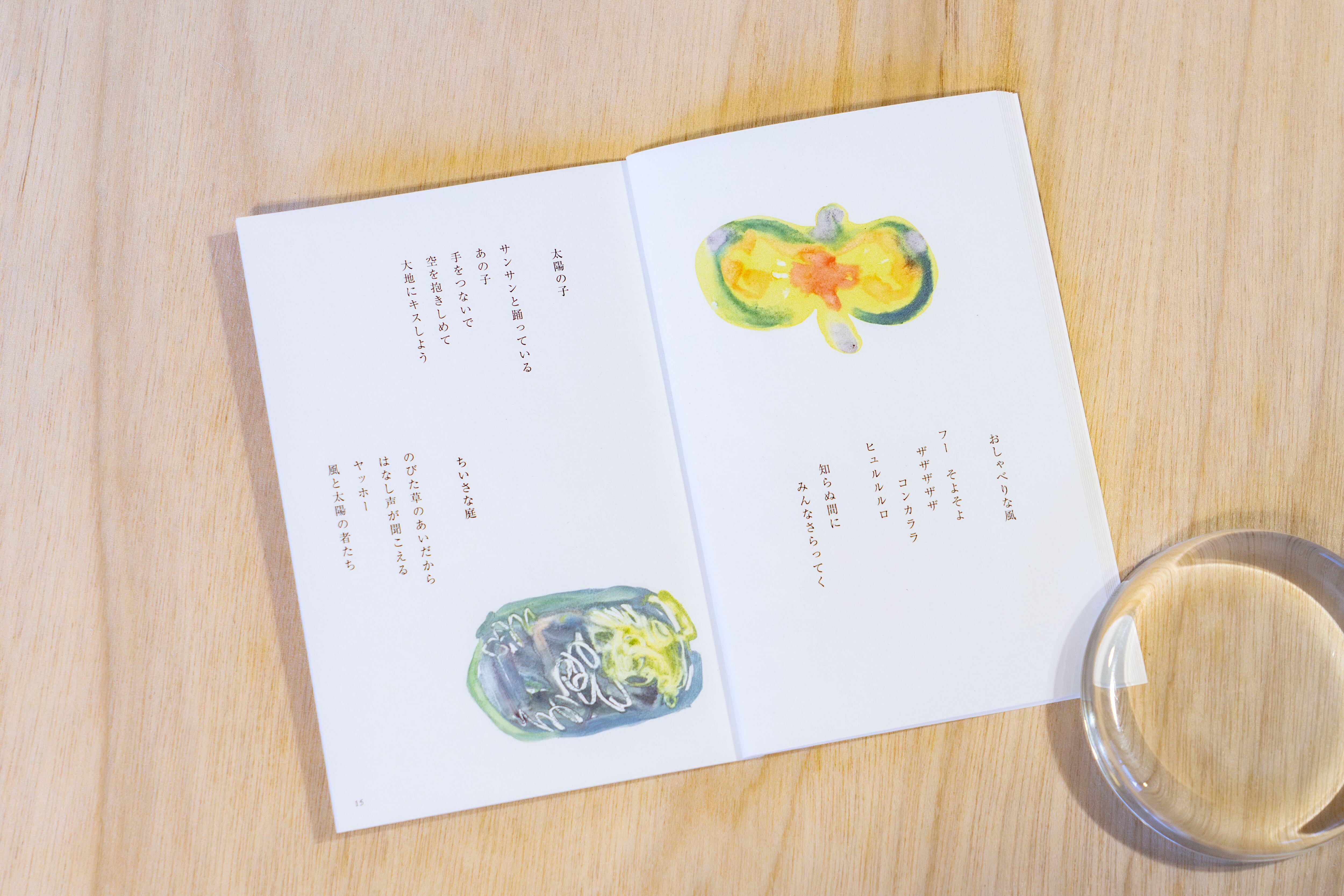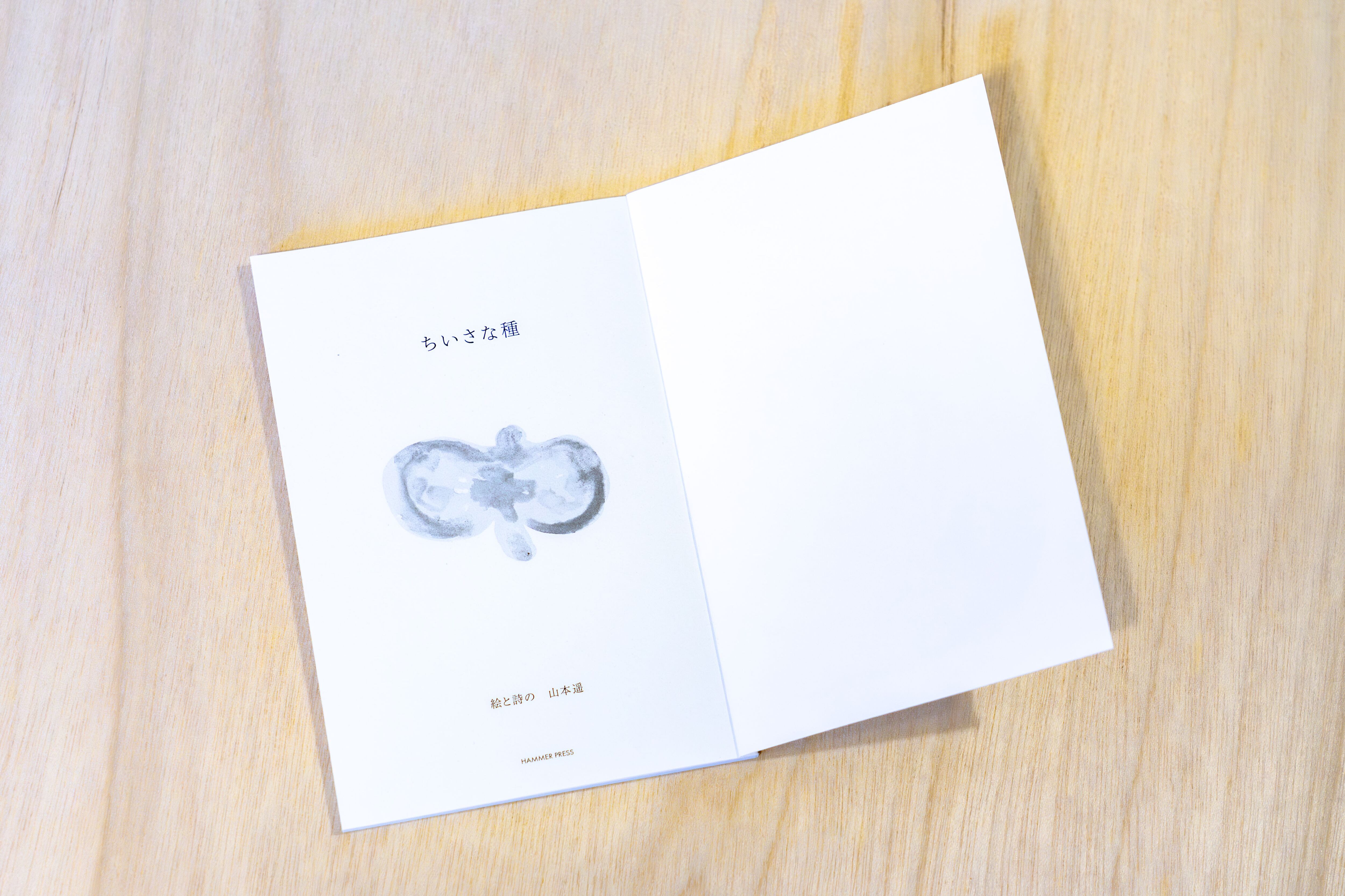 たとえばノートの隅に何気なく描いたドローイングのようなもの ー描いた本人も気づかず捨ててしまうようなー それらを拾い集めて、丁寧になぞってかたちにしたハガキサイズの小さな本です。東京で勤人をしていたとき詩作に励まされた山本は2023年に長崎に拠点を移したのち、より自然に近い土地でいくつもの「ちいさな種」を目の当たりにします。毎日海を眺めるおじいさん、畑の足跡、竹藪の小道、寝そべって流れ星を発見したこと・・・ 生活と制作の日々に、私たちは自然の中のほんの小さな生命であり、ただそれぞれが砂の中に光る一粒だと思いました。